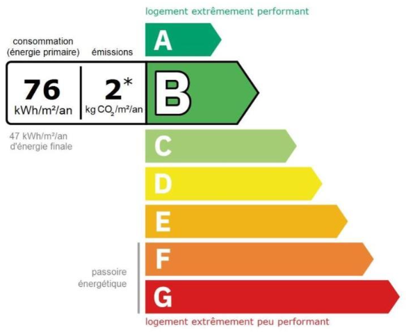 - Performance énergétique : Classe B (76kWh/m2/an)